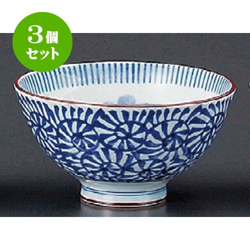 원본상품명: 3個セット 飯碗(磁器) ?外タコ唐草梅中平 [113 x 60mm] 和食器 料亭 旅館 ?食店 業務用