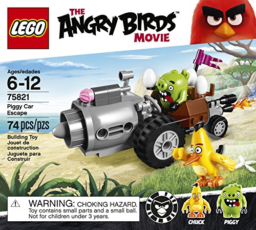 -. Binding : Toy -. Brand : LEGO -. Color : Multi-colored -. Department : unisex-child -. EAN : 0809787026926 -. Edition : 2016 -. Feature : Piggy Car features 2 exhaust pipes (one with a flame), a nest, 2 eggs, flag and an ice cream shooter / Includes 2 figures: Chuck the Angry Bird and a piggy / Piggy Car measures over 2" (6cm) high, 6" (16cm) long and 2" (6cm) wide / Send speedy Chuck racing after the Piggy Car to remove the eggs from the nest and bring them back to the flock / Create fun action scenes with a twist from The Angry Birds Movie -. Genre : strategy -. IsAdultProduct : 0 -. ItemPartNumber : 6137885 -. Label : LEGO -. Manufacturer : LEGO -. Model : 6137885 -. MPN : 6137885 -. PackageQuantity : 1 -. PartNumber : 6137885 -. ProductGroup : Toy -. ProductTypeName : TOYS_AND_GAMES -. Publisher : LEGO -. Size : One Size -. Studio : LEGO -. Title : LEGO Angry Birds 75821 Piggy Car Escape Building Kit (74 Piece) -. UPC : 732235195564 -. Warranty : No Warranty