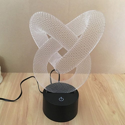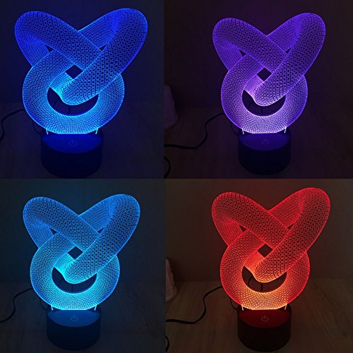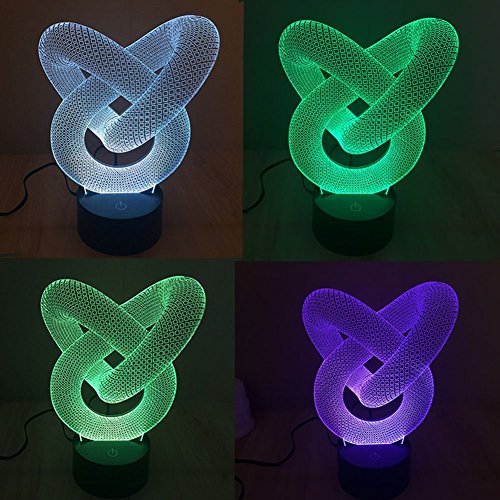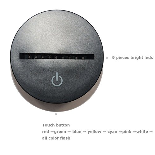 -. Feature : Perfect for home decoration, play room, man cave, office,kids room decor, perfect night light / Fully color customizable by smart touch button with 7-color display. USB charging. Powered by 5V USB or AC adaptor with 5V output USB Port / The RGB 3D 7-color gradual changing LED touch switch visualization illusion atmosphere desklamp and nightlight is a fantastically unique item that makes for the perfect gift. The lamp makes the perfect gift for kids,adults,families and friends / Automatically color changing mode. Press the touch button to last color, then press it again, auto color changing / Note:When you touch the power switch first, it shows the first color. Touch second, the light turns off. Touch third, it shows the second color. Until the lamp shows the seventh color and turns off, it will be going to the mode of 7-color gradual change.