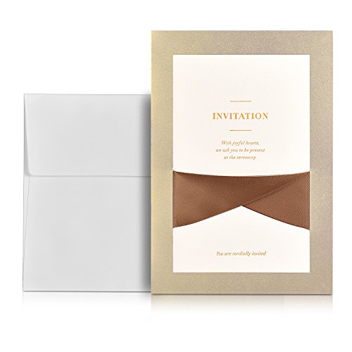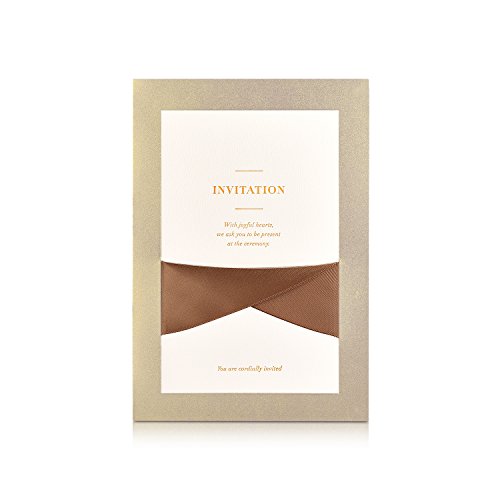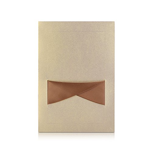 WEBO 1pcs gold wedding greeting invitation card with shimmer effect and ribbon decorated for Wedding ,Bridal Shower Rehearsal Dinner ,Bachelorette Party...