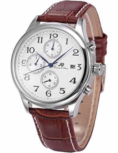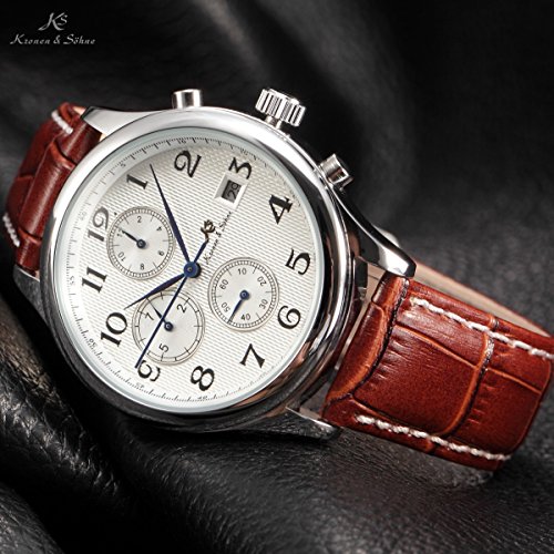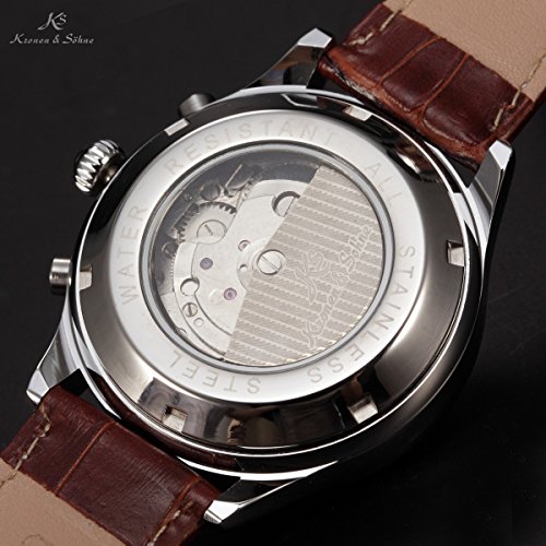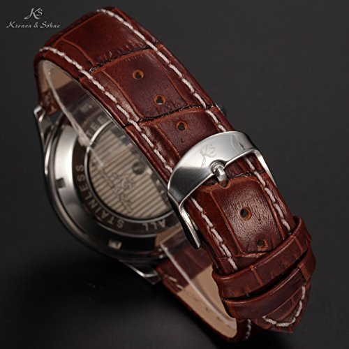 -. Binding : Watch -. Brand : KS -. Department : Mens -. EAN : 0700900786072 -. Feature : ATTENTION!!! Automatic movements mark the passage of time by a series of gear mechanisms, and are worked by the movement of your wrist as you wear it. It will stop if the watch stop moving for a long time, please turn the crown of watches by hand / Be Sent in a solid box with a warranty card. 12 months International Guarantee -. Label : KS -. Manufacturer : KS -. Model : KS154 -. MPN : KS154 -. PartNumber : KS154 -. ProductGroup : Watch -. ProductTypeName : WATCH -. Publisher : KS -. Studio : KS -. Title : KS Automatic Mechanical Waterproof Date Day Month Display Men's Brown Leather Strap Watch KS154 -. UPC : 700900786072