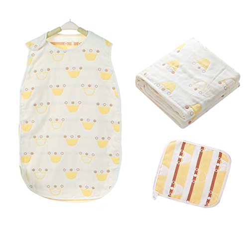 Product Description Baby items with cute crown design, 3 in 1 which include baby sleepbag,baby blanket and bibs . all made with 100% soft muslin cotton ,breathable totally safe for babies Baby have a whole suit crown designed sleep sack and bed conforter ,super cute and comfortable 0