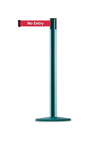 Tensabarrier 889U-28-28-STD-NO-RBX-C green Post, 2" Wide, 7' 6" Length "Red No Entry" Belt, 90" Length, Steel