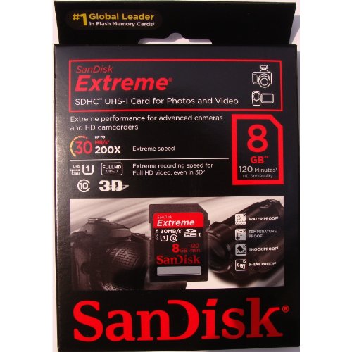 SanDisk 8GB Extreme HD Video SDHC Class 10 UHS-I High Performance Memory Card (SDSDX-008G-X46) - Retail Package