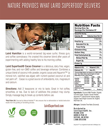 Laird Superfood Cacao Coffee Creamer | Dairy & Gluten Free, Vegan, Soy Free, Non-GMO - 1 lb
