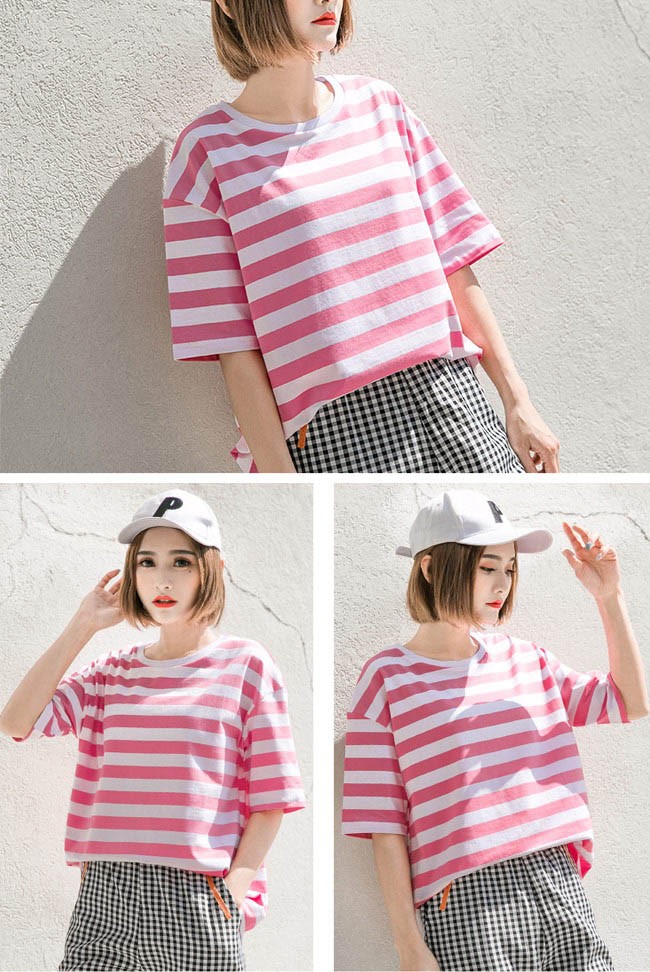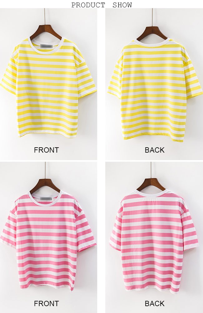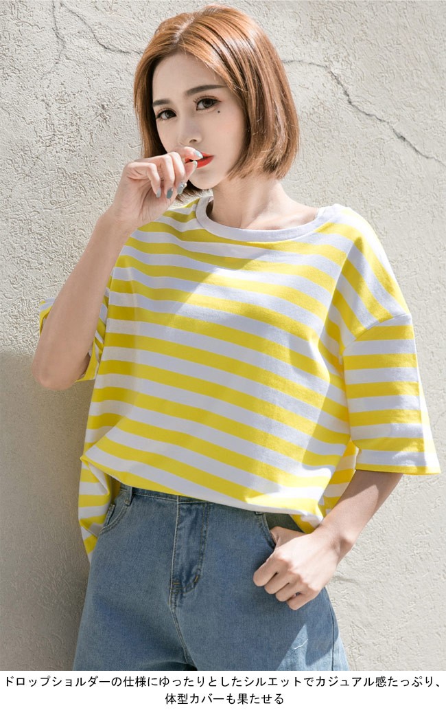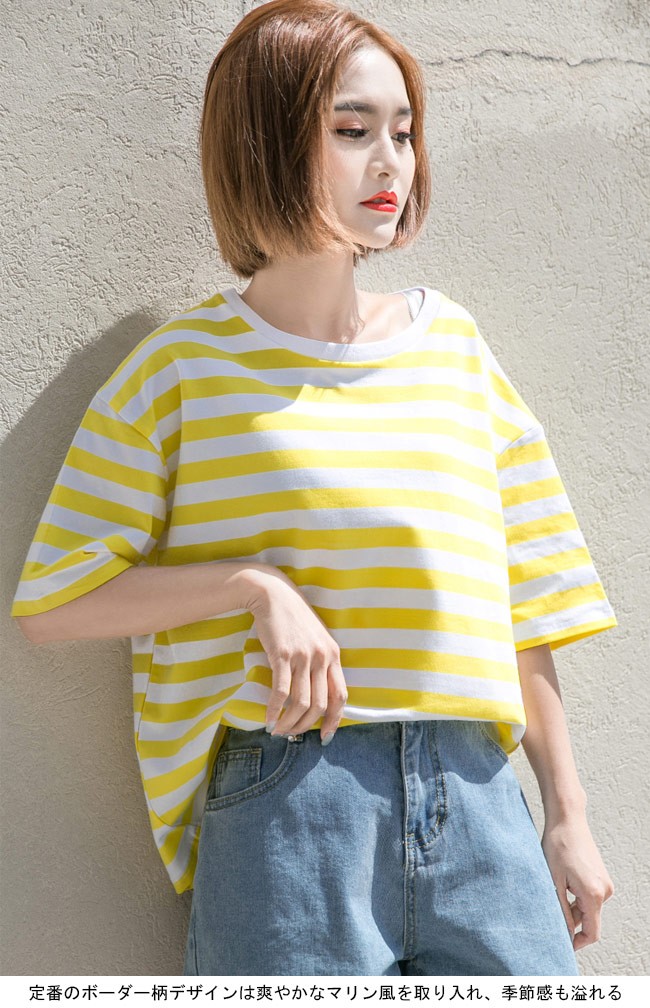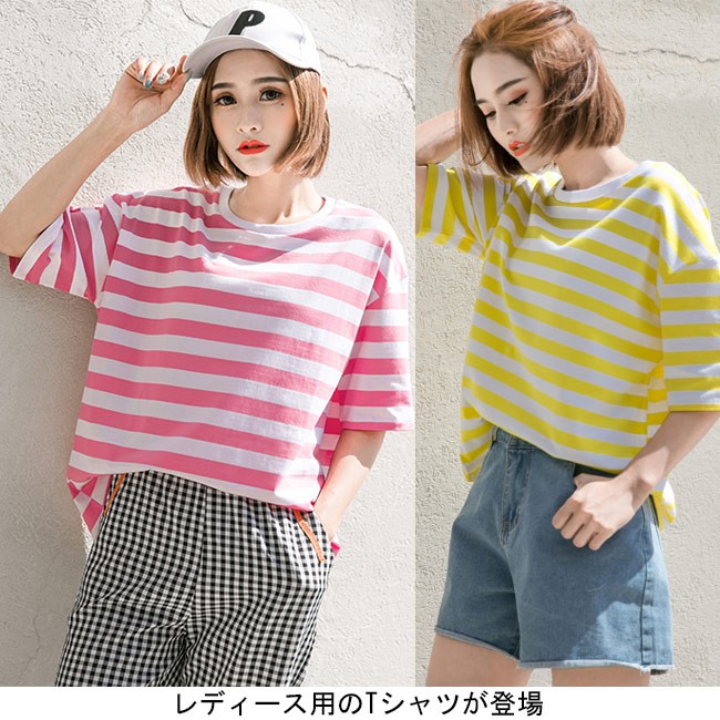 レディース用のTシャツが登場 吸湿性・通気性に優れた綿混紡素材を厳選、夏に最適な肌触りをもたらす ドロップショルダーの仕様にゆったりとしたシルエットでカジュアル感たっぷり、体型カバーも果たせる 定番のボーダー柄デザインは爽やかなマリン風を取り入れ、季節感も溢れる 若い女性らしい明快な配色が用意され、シンプルなデザインでありながら甘さも失わない | |