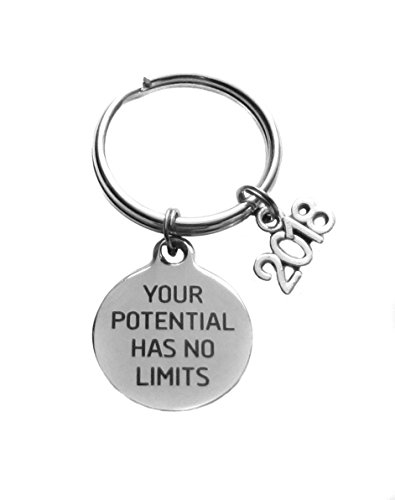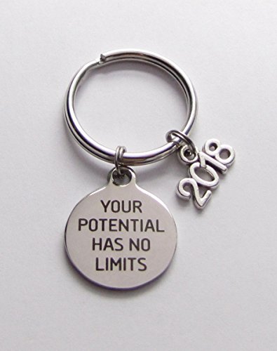 Product Description This inspirational Keychain is made with a stainless steel 3/4" x 7/8" or 19mm x 22mm "Your Potential Has No Limits" circle charm and an antique silver tone "2018" charm. Makes a great inspirational graduation gift or motivational incentive for any seminar or training class! 0