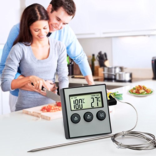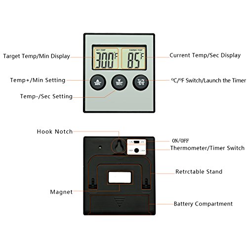 Product Description HOTLOOP - PERFECT COOKING EVERY TIME! You remember that one Thanksgiving. Your oven's convection setting had been acting up. But you figured it was still safe to use it for your 22 pound bird. And miraculously, everything seemed fine. The oven read 200°C, same as ever. Then you pulled out the turkey after 4 hours to find it broiled to a dry, inedible stuffing tomb. Grandma cried for a while. Never let this happen again with the Hotloop oven thermometer. Cooking appliances can deviate from the desired temperature because most ovens will be off from the set temperature. The oven thermometer will provide a much more accurate reading of what's going on in your oven And it will provide an additional check that food is cooked at the temperature indicated on the appliance. Then you may make adjustments to ensure that you cook or roast at the proper temperature. Accurate from -50°C to 300°C (-58°F to 572°F). You can hang your trust on Hotloop's 50 year legacy of precision thermometry. Notes: The probe is meant to be left in the oven but not place the thermometer in a working oven. The thermometer and the wire are not waterproof or dishwasher safe. Do not immerse it in water directly. Care and Cleaning: wipe clean the probe with a damp cloth. Please replace the batteries when the display is dim. Clean the probe thoroughly after every use. Specifications: Material: Stainless Steel Probe Length: 22cm Cord Length: 110 cm Battery: 1 x AAA Package Content: 1 x Thermometer 1 x Probe 1 x Probe Clip 1 x User Manual 0