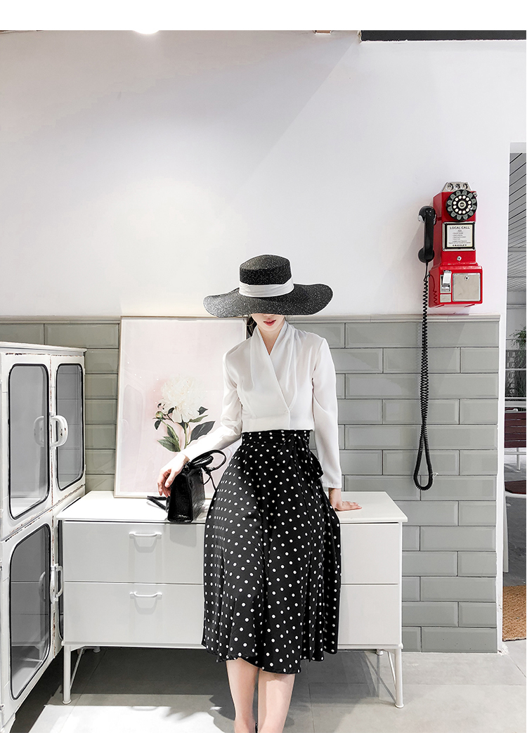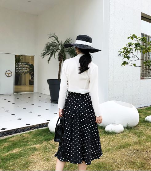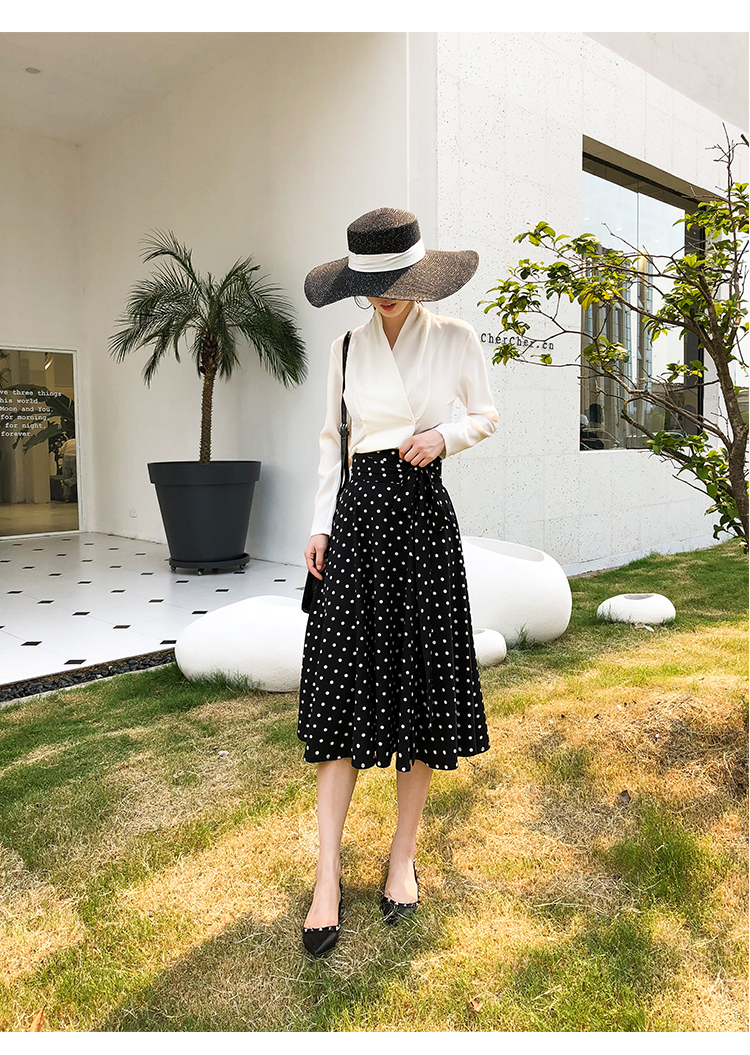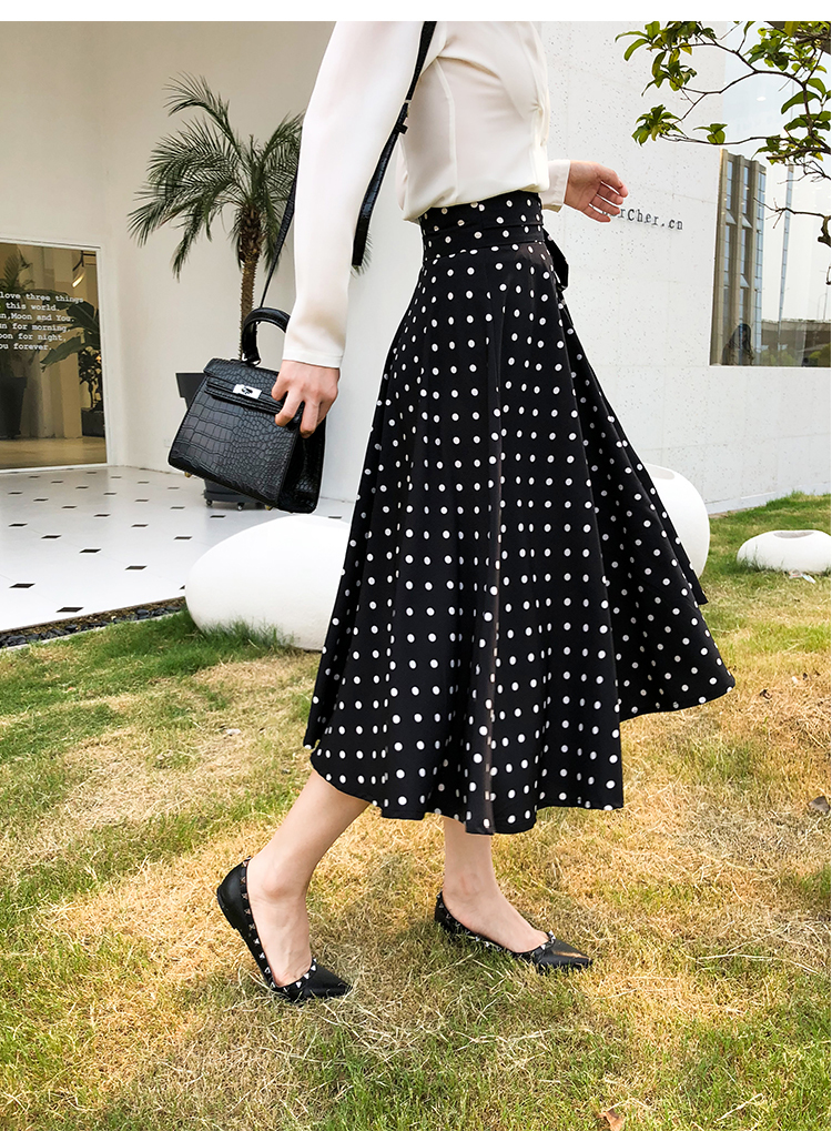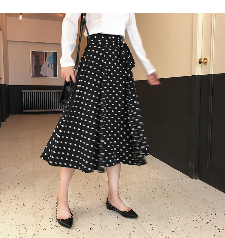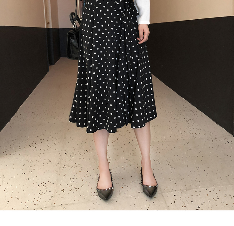 トレンドのドット柄にウエストのリボンで可愛らしさをプラス☆