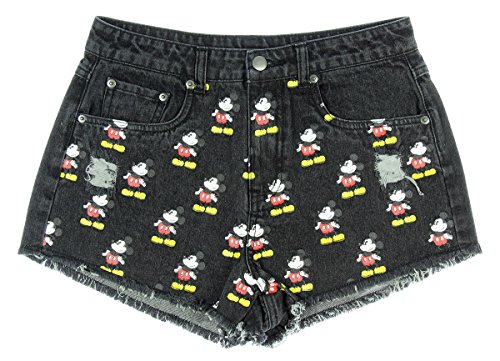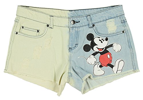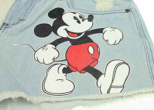 Disney Women's Juniors Daisy Duke's Style Denim Cutt Off Shorts (White Wash/Blue Mickey Mouse, X-Small)