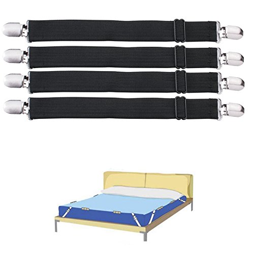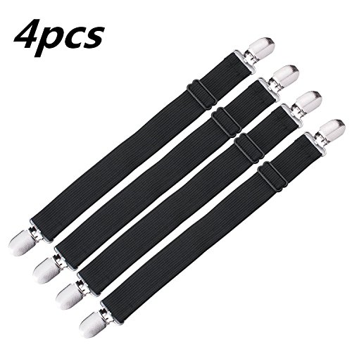 Adjustable Bed Sheet Fasteners Suspenders, Black, Set of 4
