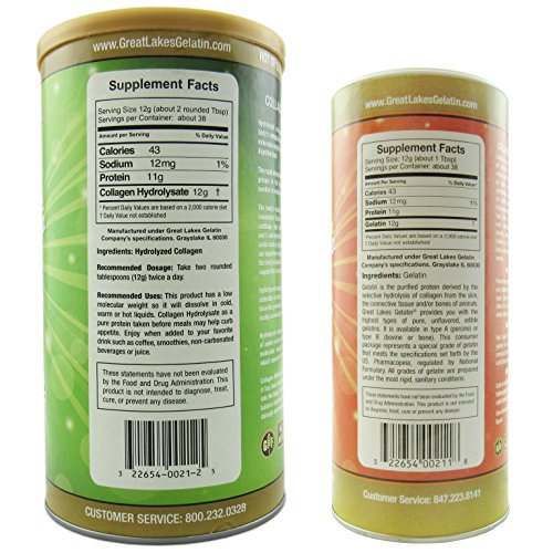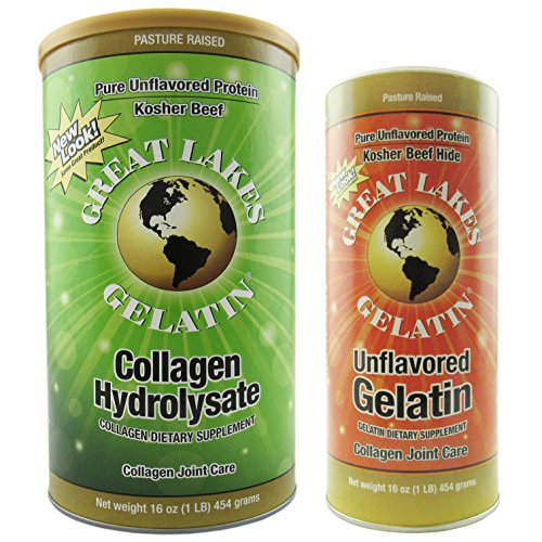 Great Lakes Gelatin, Kosher, 16-Ounce Cans of Unflavored & Collagen Hydrolysate