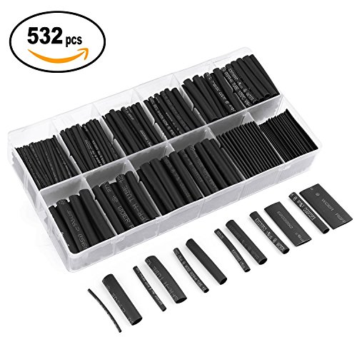 Heat Shrink Tubing 532pcs innhom Ratio 2:1 Insulation Protection Flame Retardant Heat Shrink Tube Sleeving Wrap Car Electrical Cable Wire Kit Set Black in a clear plastic box
