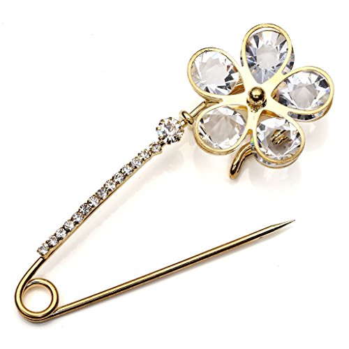 Fashion golden plated chic safety pin jewelry brooch. Exquisite flower designed ornament brooch. Elegant and very eye catching. Sparkle little jewelry brings you more attention. Makes you the most stand out one out in crowd.