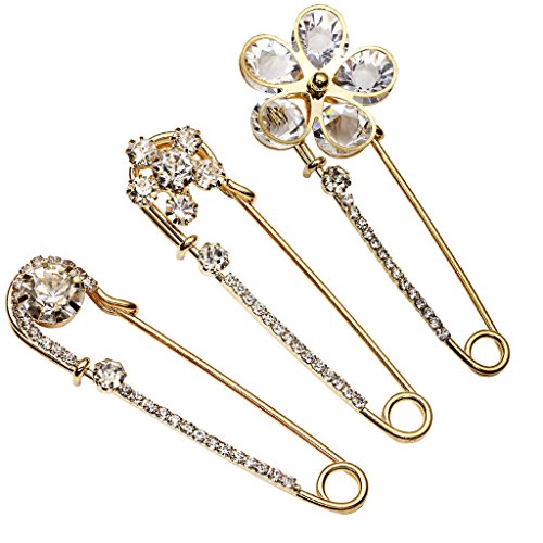 Top Plaza Holiday Gift Pack of 3 Women Fashion Rhinstone Crystal Accented Golden Safety Pin Jewelry Brooch Breastpin - Catch Scarf ,Lapel or Collar(#6)