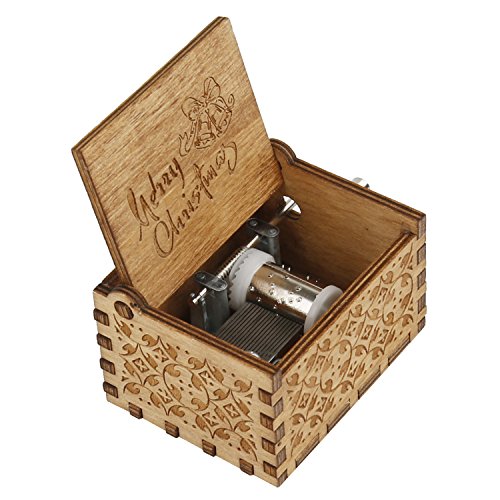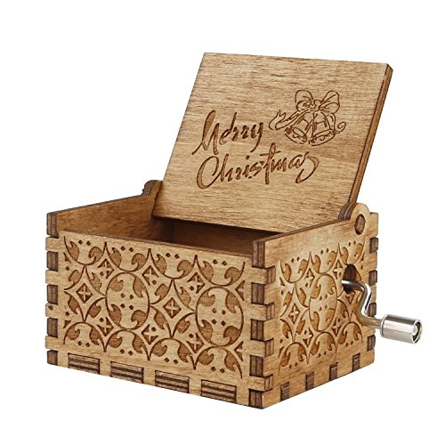 Engraved Wooden Music Box Personalizable "Merry Christmas" Hand Cranked Xmas Gifts