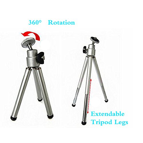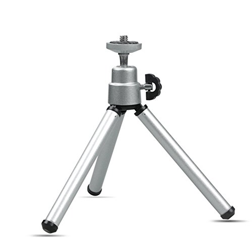 Universal Camera Tripod, Walway Adjustable 360° Rotation Mini Desk Cell Phone Mount for Camera Smartphone iPhone Samsung and Most Other Phones (Silver)