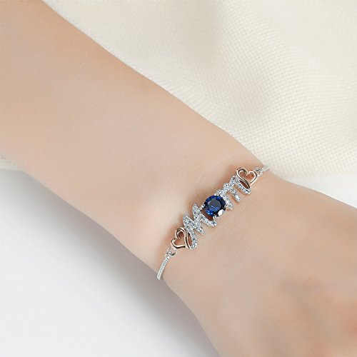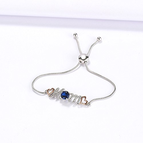 -. Feature : ♥Give her the love she deserves with this sweet and sparkling cubic zirconia and created blue sapphire "Mom" bolo bracelet / ♥Crafted in 925 sterling silver or rhodium plated brass, this personal design features the word "Mom" lined with shimmering diamond accents. In place of the letter "O," a 7.0mm lab-created bright blue sapphire provides color to the style / ♥Comes with a nice jewelry gift box, no doubt it is a perfect gift for her - girlfriend, wife, mother, daughter, sister or friend on Valentine's Day, birthday, Christmas, anniversary, Mother's Day or any other special day! / ♥Measurements - chain circumference: 9 in adjustable, the length between two snake chains: 1.57 in (4cm), width: 0.27 in (0.7cm), thickness: 0.16 in (0.4cm), weight: 0.30oz, created blue sapphire 7mm, clear cubic zirconia 1.4mm / ♥Buy with Confidence♥ 30-day 100% satisfaction guarantee & 1-year product warranty against defective manufacturing and components