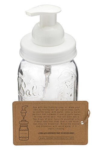 Jarmazing Products Mason Jar Foaming Soap Dispenser – White – With 16 Ounce Ball Mason Jar - One Pack!