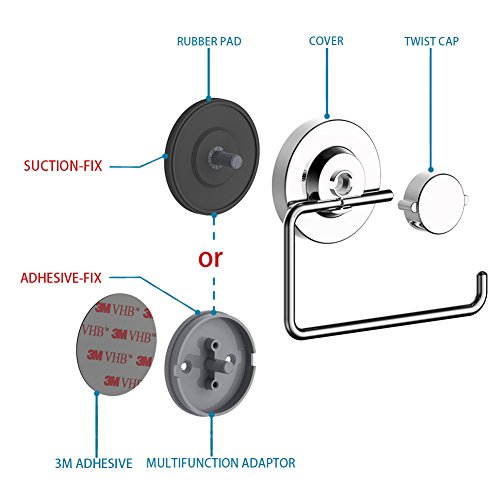 - ֎SUPER-THICK 304 Stainless Steel and CORROSION RESISTANT PREMIUM FINISH - This incredible suction cup tissue holder is made up of high strength materials 304 stainless steel, which are chrome plated for a premium finish and high-corrosion resistance (5 years non-corrosion) and easy cleaning.