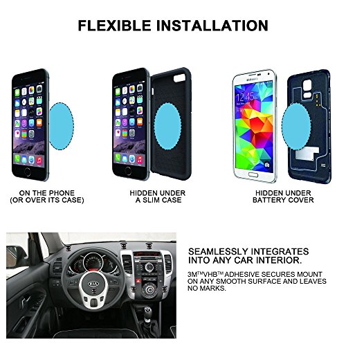 - DASHBOARD MOUNTED - Unlike air vent-mounted holders, this phone holder for car won't make your phone overheat, even in a warm car. The innovative 3M VHB Adhesive sticks firmly to the dashboard (non-textured only) yet doesn't leave sticky marks behind when removed