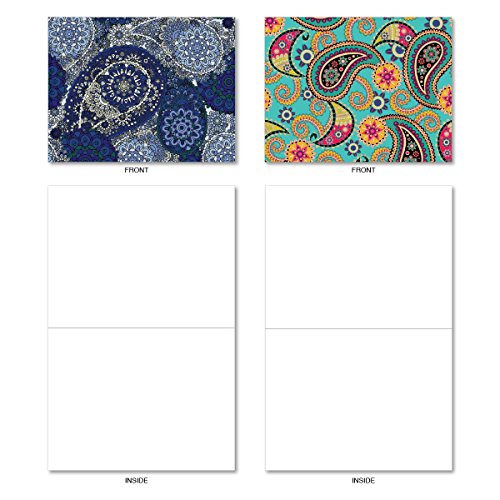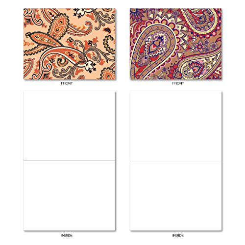 M6570OCB Crazy For Paisley: 10 Assorted Blank All-Occasion Note Cards Featuring Various Styles of Swirling Paisley Patterns in Rich Colors, w/White Envelopes.