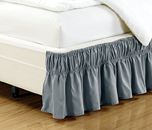 Wrap Around 15" inch fall DARK GREY Ruffled Elastic Solid Bed Skirt Fits All QUEEN, KING and CAL KING size bedding High Thread Count Microfiber Dust Ruffle, Soft & Wrinkle Free.
