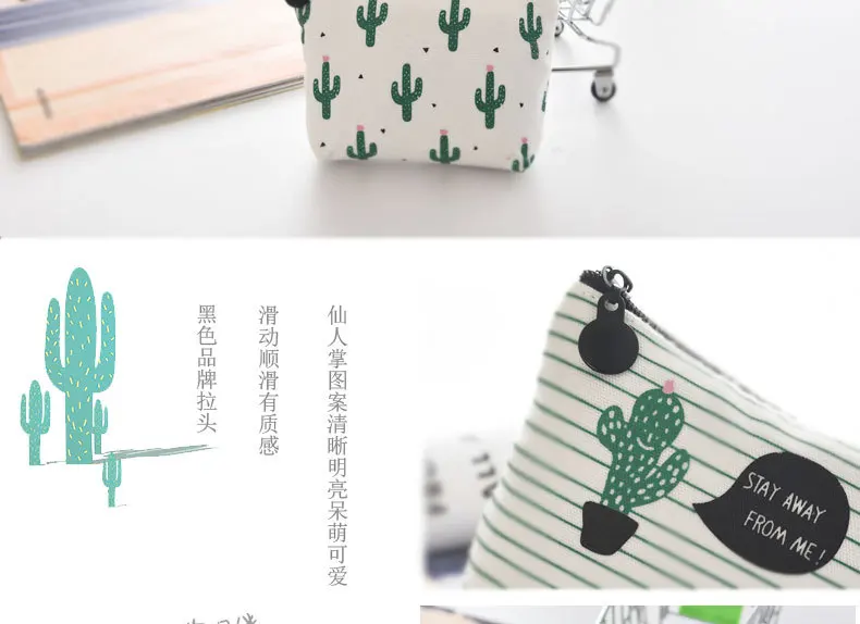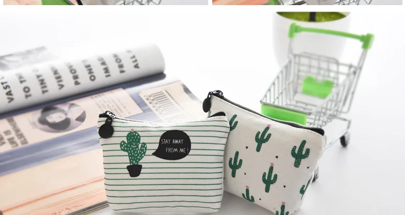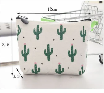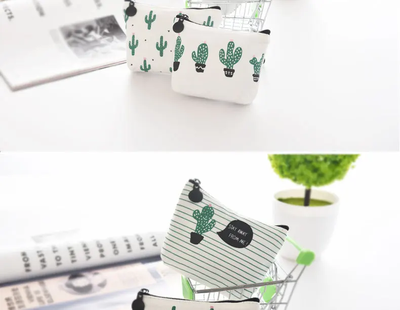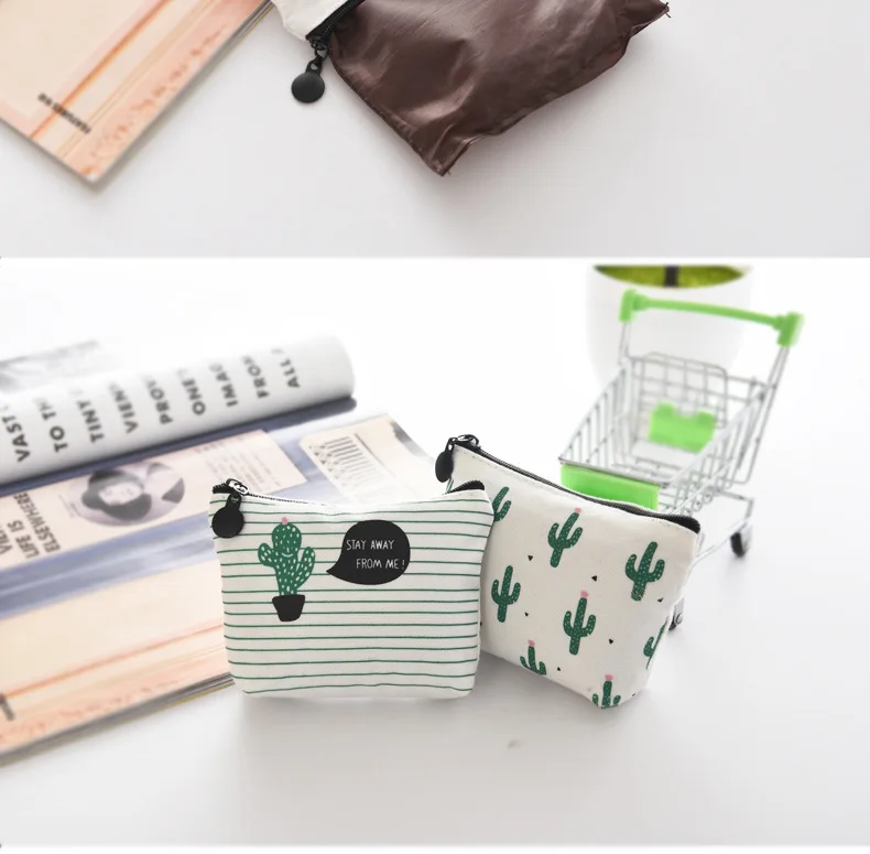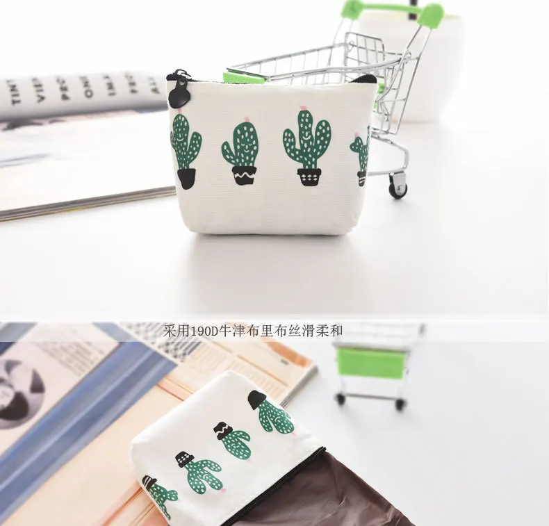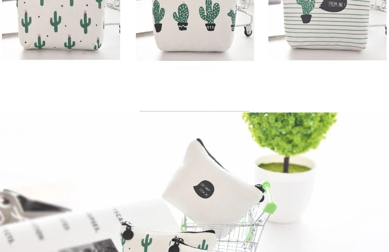 wallet,makeup brushes bag,Cosmetics:Purse Organizer Zipper canvas Cactus printing bags