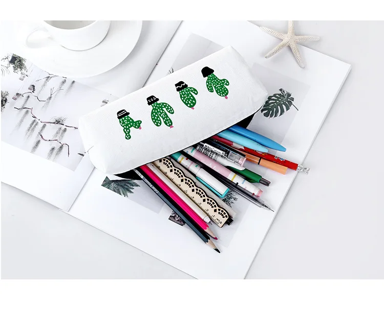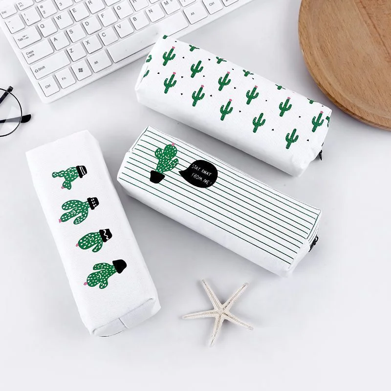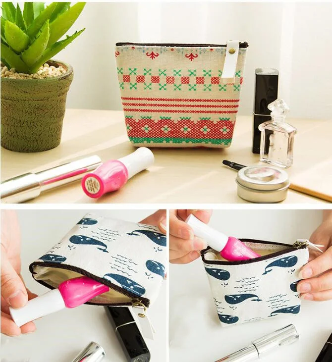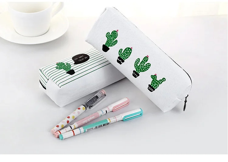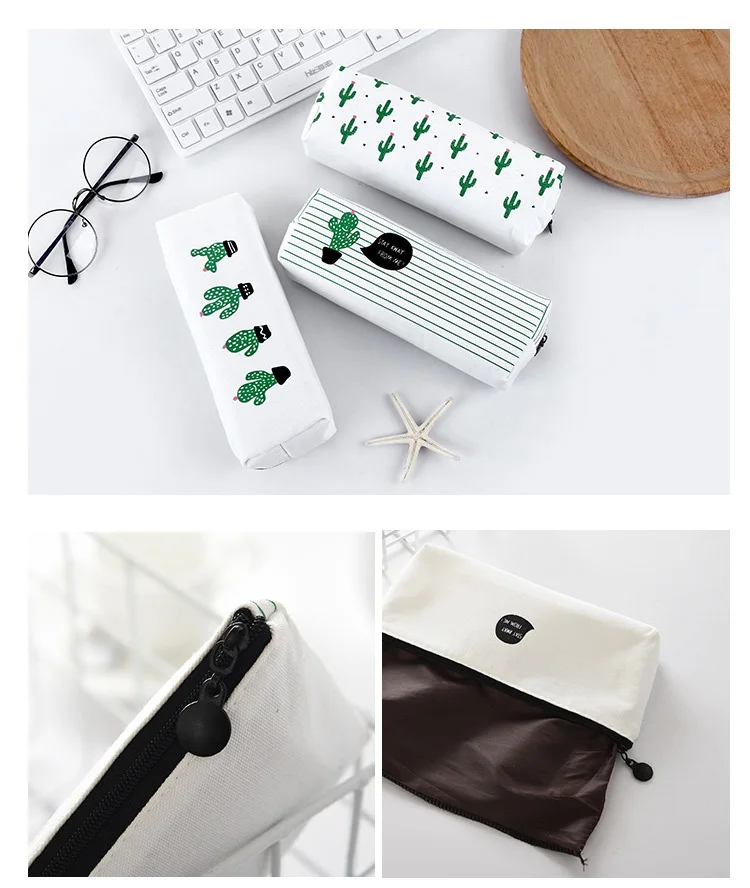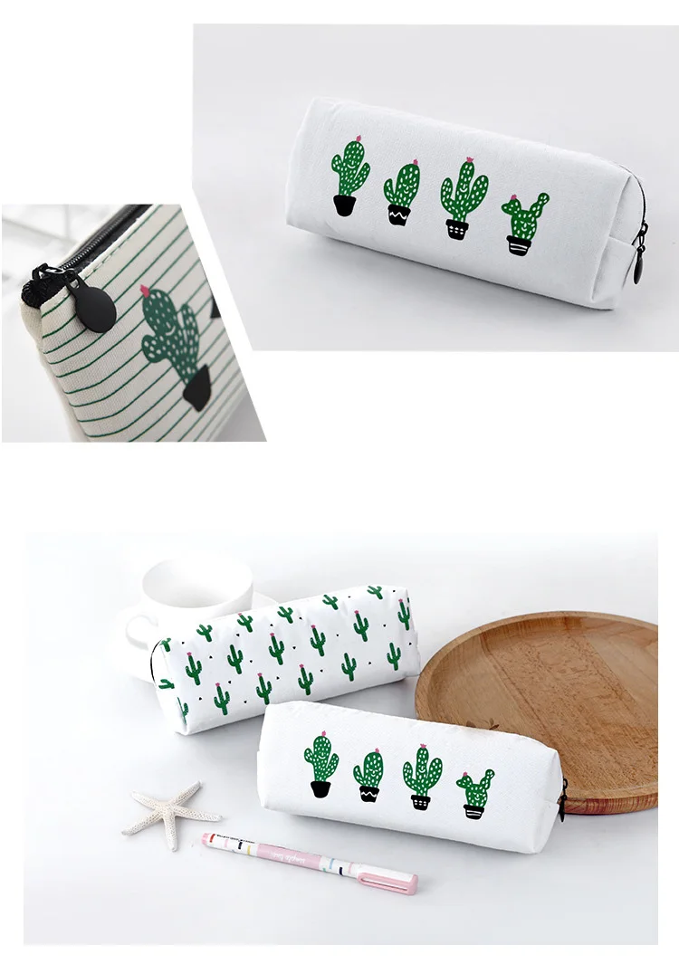wallet,makeup brushes bag,Cosmetics:Purse Organizer Zipper canvas Cactus printing bags