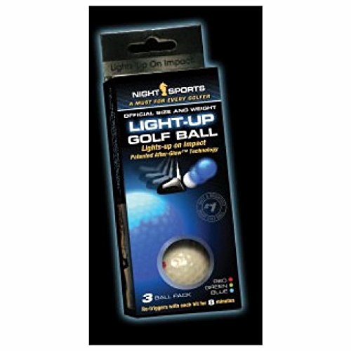 -. Binding : Sports -. Brand : Night Sports USA -. Color : Blue/Red/Green -. EAN : 0726670358257 -. Feature : Light Up Golf Ball / Bright LED light stays active for 8 minutes upon impact, re-triggers with each hit so you can always finish your game / Official Size and Weight / Patented After Glow Technology / Ideal for Golf Tournements -. IsAdultProduct : 0 -. IsAutographed : 0 -. Label : Night Sports USA LLC -. Manufacturer : Night Sports USA LLC -. Model : Night Sports Light Up Golf Ball NS-003 -. MPN : NS-003 -. NumberOfItems : 1 -. PackageQuantity : 1 -. PartNumber : NS-003 -. ProductGroup : Sports -. ProductTypeName : SPORTING_GOODS -. Publisher : Night Sports USA LLC -. Studio : Night Sports USA LLC -. Title : Night Sports USA Light Up Golf Ball (3-Pack) -. UPC : 726670358257