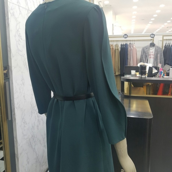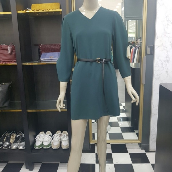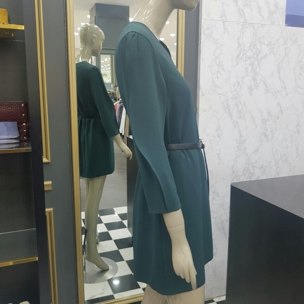 소매 부분이 독특한 디자인의 벨티드 기본 원피스입니다