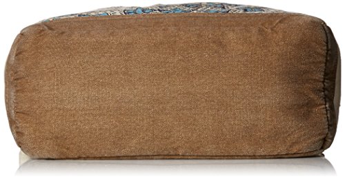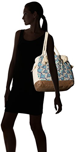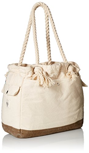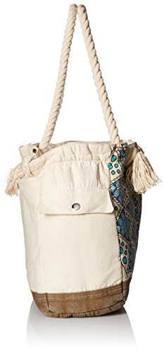 Beach tote with rope handles and placement mandalay print on front.