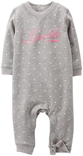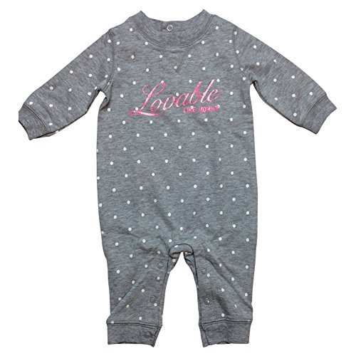 Carter's Slogan Romper (Baby) - Heather Carter's is the leading brand of children's clothing, gifts and accessories in America, selling more than 10 products for every child born in the U.S. Their designs are based on a heritage of quality and innovation that has earned them the trust of generations of families. Snaps at the legs for easy changes. Nickel-free snaps. Ribbed cuffs keep sleeves and legs in place. Back brushed fleece puts the soft side against her skin. Zoom in to see allover polka dots and glitter accents.