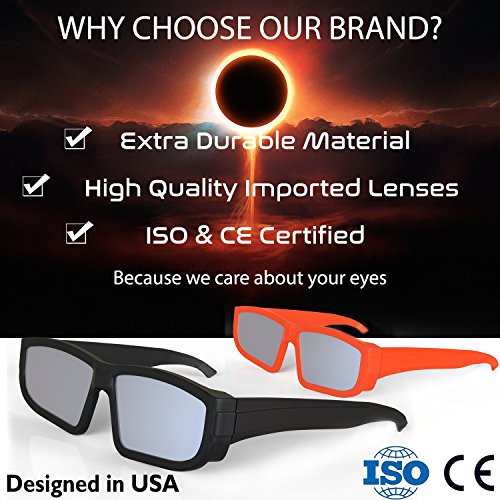😎 CE AND ISO CERTIFIED FOR DIRECT ECLIPSE VIEWING - These glasses have been independently tested to meet the latest standards for direct sun viewing safety. This allows you to watch the total solar eclipse with absolute confidence that your eye are safe! If you would like to see the certificates, just contact us and we will send them to you ASAP!