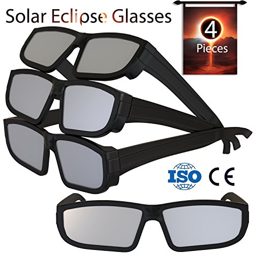 Solar Eclipse Glasses 2017 (4 Pack) - Direct Sun Viewing 100% Safe Eyewear CE and ISO Certified - Protection Shades Designed in USA by CreativeXP (Black)