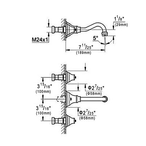 -. Title : Antique Black Bathroom Sink Faucet Solid Brass Widespread Basin Mixer Tap Wall Mount