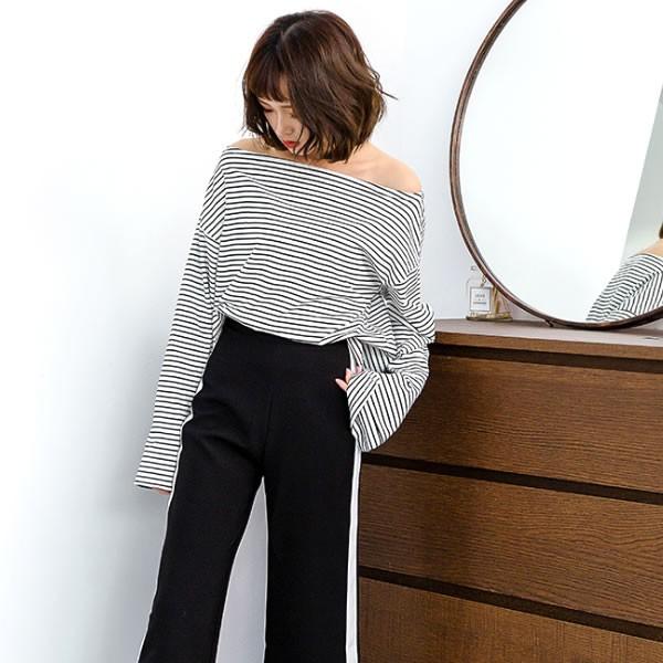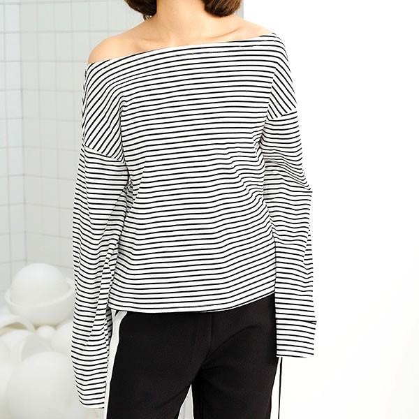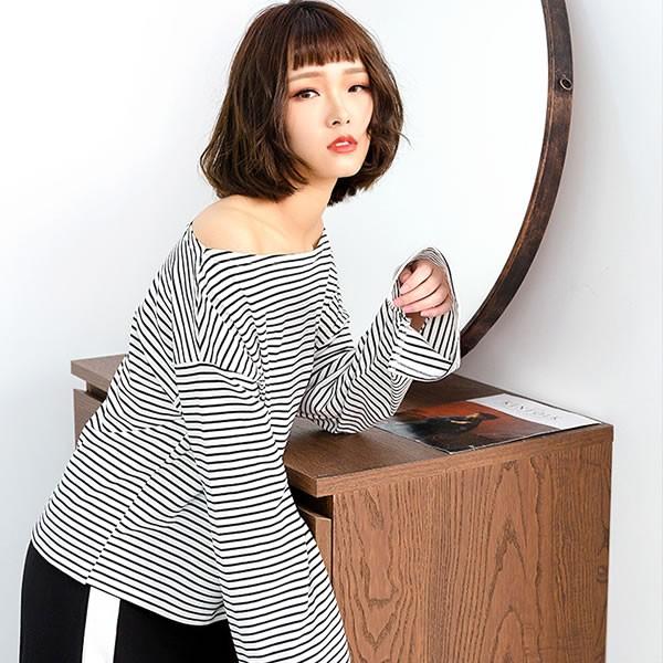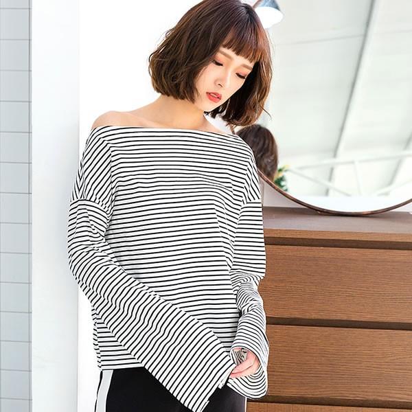 | 【即納】オフショルダー ボーダー 袖スリット カットソー トップス 白 長袖[ネコポス可] 【ワンショルダー カットソー トップス レディース 女性 肌見せ ガールズ ストリートファッション ショート丈 トップス ボーダー柄 オフショル 肩出し】 | |
