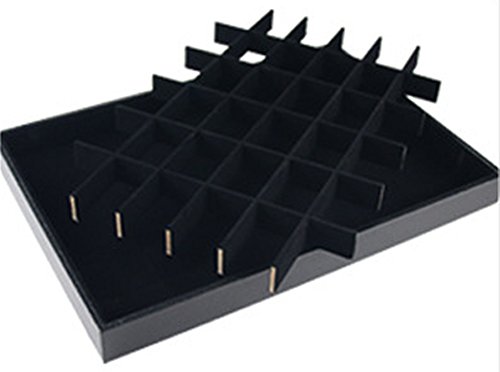 -. Feature : You can put your rings, earrings, necklaces on Jewelry Tray,and more with these modular trays that stack together and slide for added convenience. These Jewelry Organizer trays are lined with a velvet fabric that prevent scratches / Tray dimension (L x W x H): 35 x 24 x 3cm/13.78" x 9.45" x 1.18"; 24 Lattice size: 5 x 5cm/1.97" x 1.97".30 Lattice size:5 x 4cm/1.97" x 1.57".36 Lattice size:5 x 3.2cm/1.97" x1.25" / Removable grids, DIY the 24/30/36 lattices to a big compartment.Ideal for securing rings, earrings, necklaces and more / Crafted from beautiful black velvet that's soft to the touch and will protect your jewelry from any kind of damage or abrasion / This jewelry display will add a modest touch of elegance to any room its placed it. It's also ideal for store front display cases