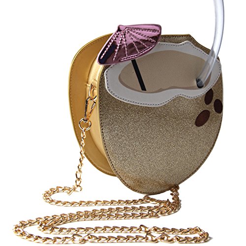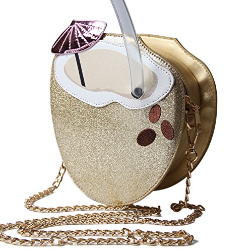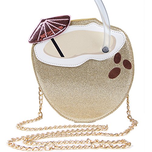 Kuang Women’s Fashion Coconut Personality Laser singler Shoulder bag crossbody bag with Straw and Embroidery