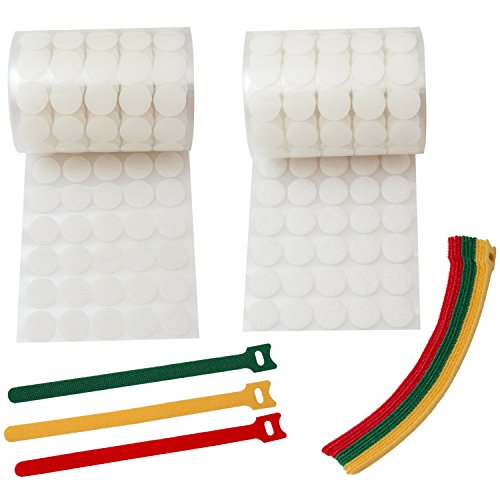 1000pcs Hook & Loop Dots (500 Pairs/Set) 3/4" Sticky Back Coins + 15pcs Reusable Cable Ties