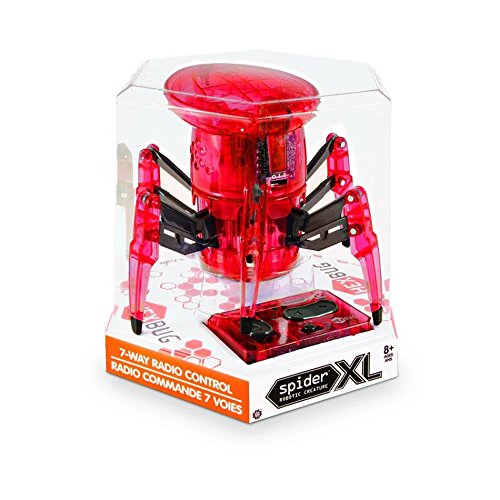 The HEXBUG Spider XL is 65 percent larger than the Original HEXBUG Spider, and features 360 degree steering, an LED forward eye, and two-channel, user selectable radio-controlled remote control. The two-channel remote control operates in three speeds (slow, medium and fast) when moving forward, and one speed when in reverse, enabling the user to operate multiple bugs independently or at the same time and at varying speeds.
