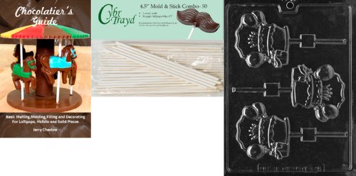 Cybrtrayd 'Personalize B-Day Cake Lolly' Kids Chocolate Candy Mold with 50 4.5-Inch Lollipop Sticks and Chocolatier's Guide