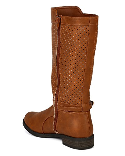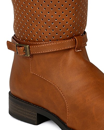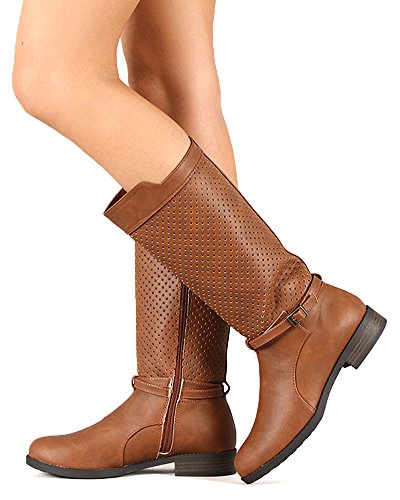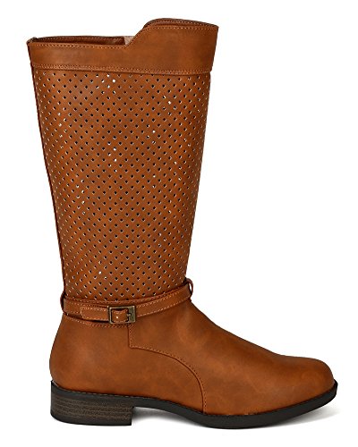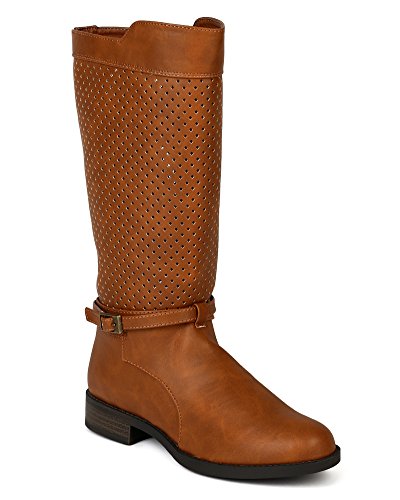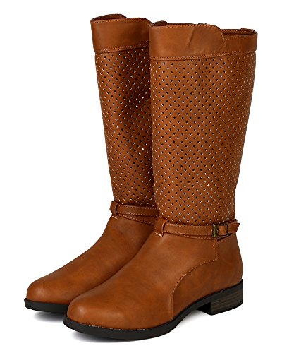 (Qupid)/Women's/Boots/DIRECT FROM USA/Qupid BD10 Women Leatherette Perforated Calf High Riding Boot - Camel