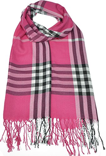 HANDBYHAND NEW YORK Plaid Checkered Pattern Classic Lightweight Long Wrap Scarf