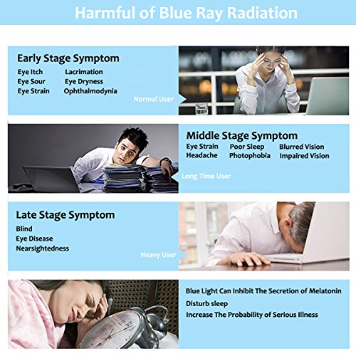 - How Does Duduma Protect Health: Duduma uniquely designed computer glasses include special anti blue ray lens with blue light filter coatings to reduce glare. Greatly helpful for the men women computer users who often end up with blurred vision, eye strain, headaches, and sore neck, sore shoulders or a sore back caused by leaning forward actions.