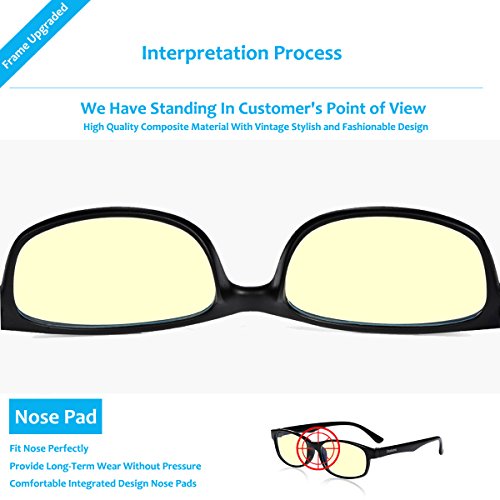 Duduma RT2014 Computer Glasses Readers Reading Video Gaming Glasses of Anti Blue Light Eye Strain and UV Light Coating with Superlight & Flexible Frame (Black matte frame with yellow lens)