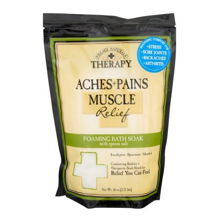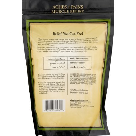 Studio : Village Naturals Publisher : Village Naturals Binding : Misc. Product Description Village Naturals Therapy Aches Pains Muscle Relief Foaming Bath Soak With Epsom Salt Eucalyptus Spearmint Menthol. Soothing comfort for stress, sore joints, backaches, arthritis. Unique blend of powerful therapeutic ingredients specially formulated to provide fast-acting relief you can feel. Revitalize restore while soaking in our powerful blend of essential oils and extracts including Eucalyptus. Spearmint and cooling Menthol. Epsom Salt (Magnesium Sulfate) helps to ease stressed muscles, while relaxing in a softly foaming bath comforts your body. 0