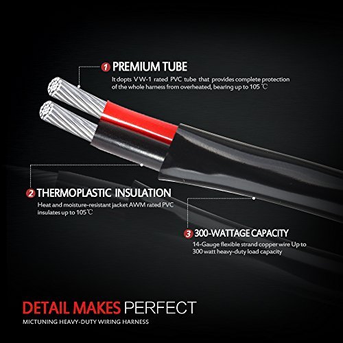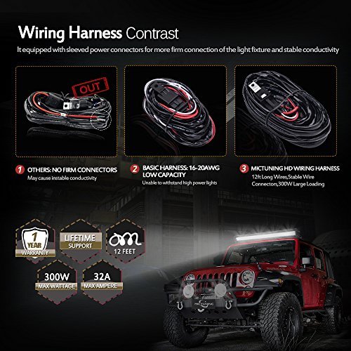 DETAILS MAKES PERFECT: adopt 14 Gauge flexible strand copper wire,up to 300 watt load capacity.It is universal fit for any 7" 10" 12" 20" 30" 40" 50" light bars that is within 300w.