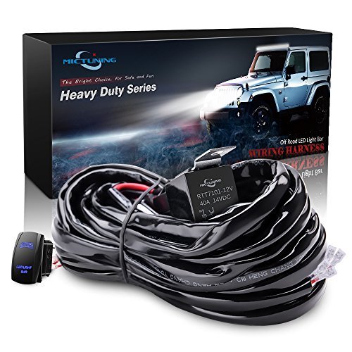 MICTUNING HD 300w LED Light Bar Wiring Harness Fuse 40 Amp Relay ON-OFF Rocker Switch Blue(2Lead 12ft 14AWG)