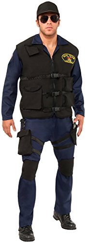 -. Binding : Apparel -. Brand : Rubie's -. Department : mens -. Feature : Seal team 1 deluxe costume includes navy jumpsuit, vest, hat, knee pads, and gun harness / Black vest features zipper and buckle closure, gear pockets, and seal team special warfare logo / Available in sizes standard (42 to 44-inch jacket size, 34 to 36-inch waist) and X-large (44 to 46-inch jacket size, 36 to 40-inch waist) / Great for Halloween, costume parties, and other fun events / Rubie's offers holiday and novelty costumes and accessories in sizes and styles for the entire family -. Genre : Career -. IsAdultProduct : 0 -. Label : Rubies Costumes - Apparel -. Manufacturer : Rubies Costumes - Apparel -. PackageQuantity : 1 -. ProductGroup : Apparel -. ProductTypeName : ADULT_COSTUME -. Publisher : Rubies Costumes - Apparel -. Studio : Rubies Costumes - Apparel -. Title : Rubie's Costume Co Men's Seal Team 1 Costume